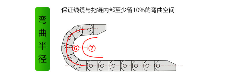 (拖鏈的彎曲半徑⑥)≥(線纜的彎曲半徑⑦)*10%